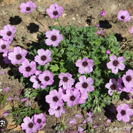 Герань садовая Лоуренс Флэтмен – эффектный почвопокровный неприхотливый многолетник. Высота 10 - 15 см. Цветки диаметром 2,5 см лилово- розовые с темно- бордовым центром и ярко выраженными прожилками. Период цветения июнь- июль. Больше других видов гераней страдает от низких температур и высокой влажности почвы ранней весной и поздней осенью.
