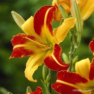 Лилейник Франс Халс– травянистый корневищный многолетник. Высота растения - 60 см. Размер цветка: до 15 см. Двухцветная окраска цветов: внутренние лепестки кирпично-красные, внешние - оранжево-желтые. Спящий, диплоид. Цветение обильное в середине августа.
