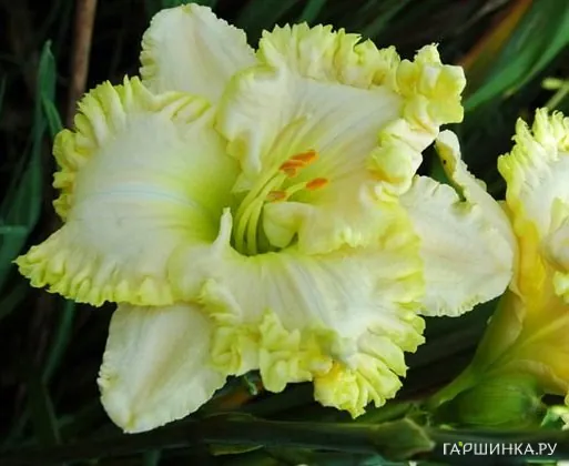 Лилейник Грин Мистик– травянистый корневищный многолетник. Высота до 60 см. Диаметр до 15 см. Имеет нежный кремовый оттенок с лимонными гофрированными краями и горловиной зелено-желтого цвета. Повторноцветущий.
