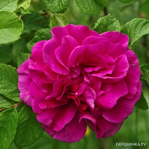 Роза Ханса ругоза (лиц) - группа парковых роз. Побеги легко направляются, куст формируется просто, компактный, длина 1,5-2,0 м. Цветок махровый, красно-фиолетовый, блюдцевидный. Цветки одиночные, и могут быть собраны в соцветия по 4 - 5 шт, лепестки классические, заостренные, повторноцветущая. Лист зеленый, глянцевый, некрупный. Зона зимостойкости 3.
