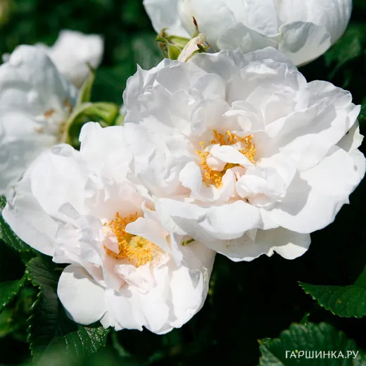 Роза Вайт Роадранер ругоза (лиц) - относится к группе почвопокровных роз. Куст компактный, устойчивый, разветвленный , 50-60 см. Цветок чисто-белый, 6 см, полумахровый, шаровидный, лепестки закручены, к дождю устойчив, форма классическая, аромат слабый, устойчивый. Соцветия-охапки, очень многочисленны. Лист средне - плотный, зеленый, полуглянцевый. Цветение обильное, повторное. Зона зимостойкости 4.