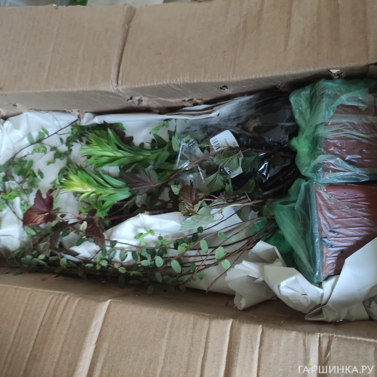 Добрый день! Посылка пришла раньше времени . Растения все в хорошем состоянии , все живые с листочками, земля мокрая в горшках. Я очень довольна. Покупала барбариси Венис', рододендрон гибридный, сирень Чарльз Джоли, пузыреплодники: ред Барон, Диаб